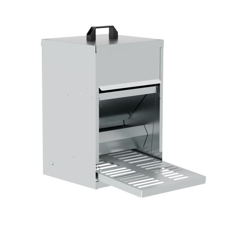 16 literes térfogatával (kb. 10 kg takarmány) 19-25 tyúk számára elegendő táplálékot biztosít.