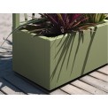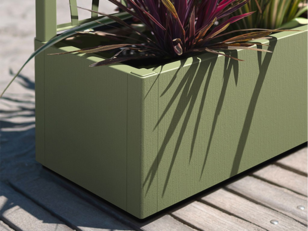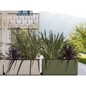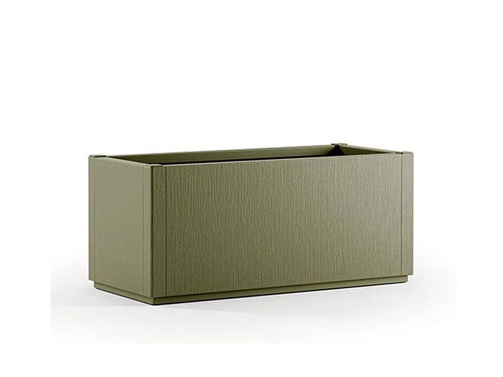 Vízelvezető aljú doboz, kültéri használatra, polipropilénből készült, olívazöld színű, 80 literes űrtartalommal, méretek 80x36x35cm.