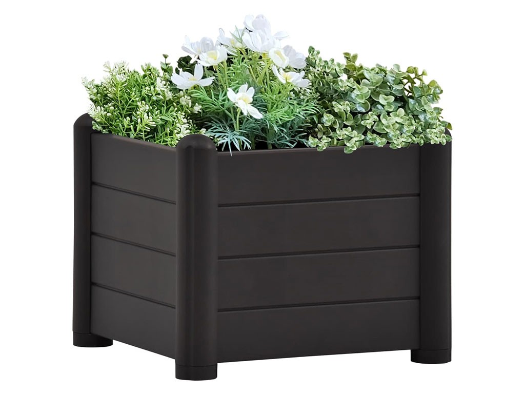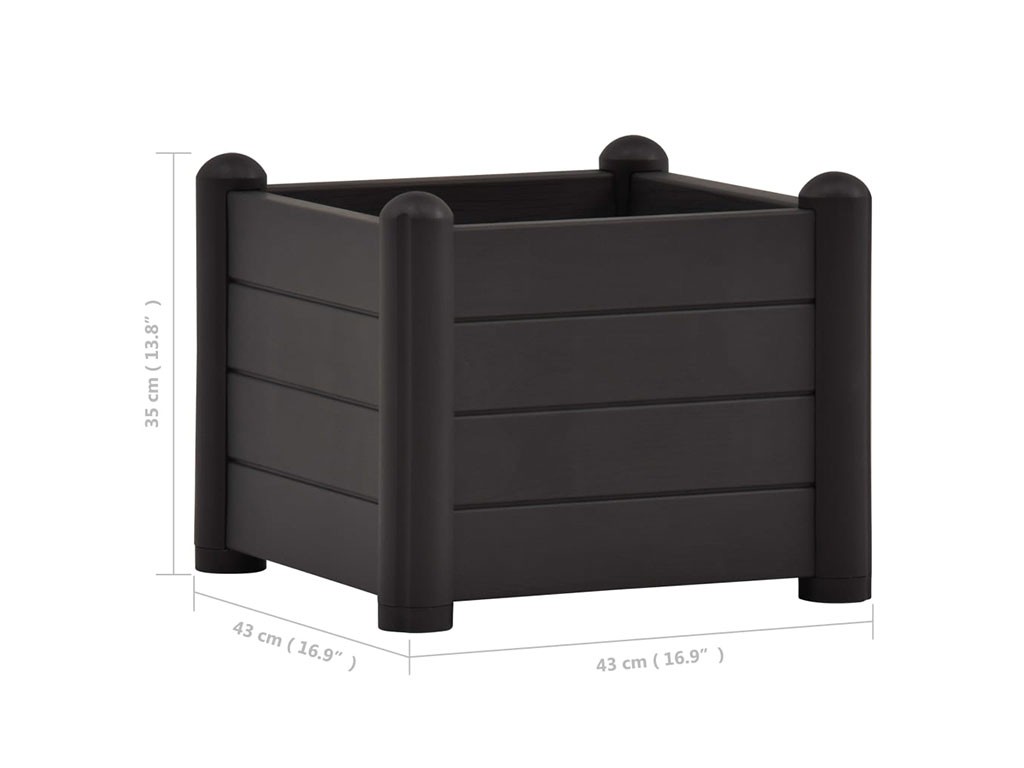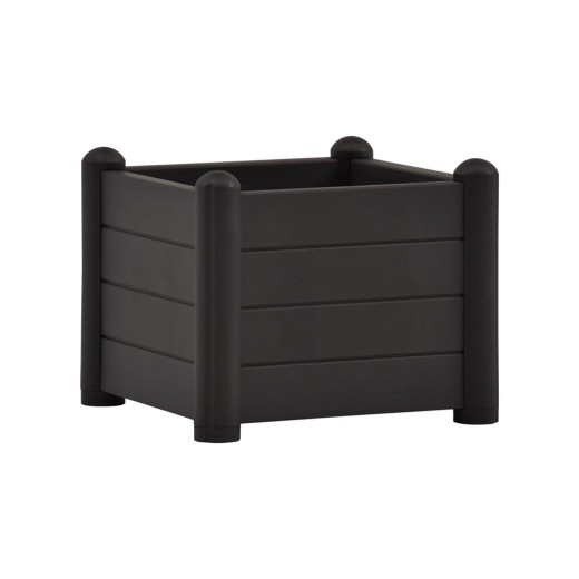 Vízelvezető aljú doboz, kültéri használatra, polipropilénből készült, antracit színű, 30 literes űrtartalommal, méretek 43x43x35cm.