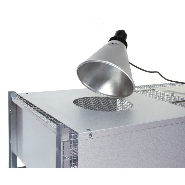 - Optimális környezet: Egy 150 W-os infravörös izzóval ellátott alumínium lámpa meleg és megvilágított környezetet biztosít a kényelmes tenyésztéshez.