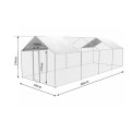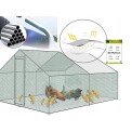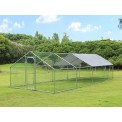 Horganyzott baromfiudvar , moduláris beépíthető rendszer, horganyzott PVC-bevonatú háló, 45x25 mm- es kerítésháló , nagy bejárati kapu, ∅25x0,65 mm-es horganyzott csövek, védőponyva a közvetlen napfény ellen, méretek 300x800x245cm.