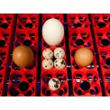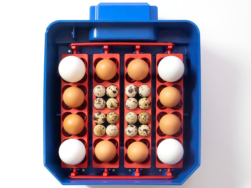 Kapacitás forgó ráccsal: 16 csirke-, 64 fürj-, 16 liba-, 16 kacsa- vagy 16 fácántojás.
