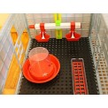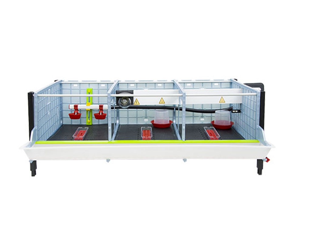 Baromfinevelő ól, 120-135 csirke tenyésztésére alkalmas, szabadalmaztatott Comfortplast technológiával , méretei 104 x 60 x 132 cm . Ez egy 3 szintes, 3 rekeszes ketrec , amelyek állítható termosztáttal és izzócsatlakozóval ellátott fűtőszalaggal , takarmánypazarlás megakadályozására ráccsal ellátott etetőkkel , 20 literes tartályból történő vízellátású itatókkal vannak felszerelve.