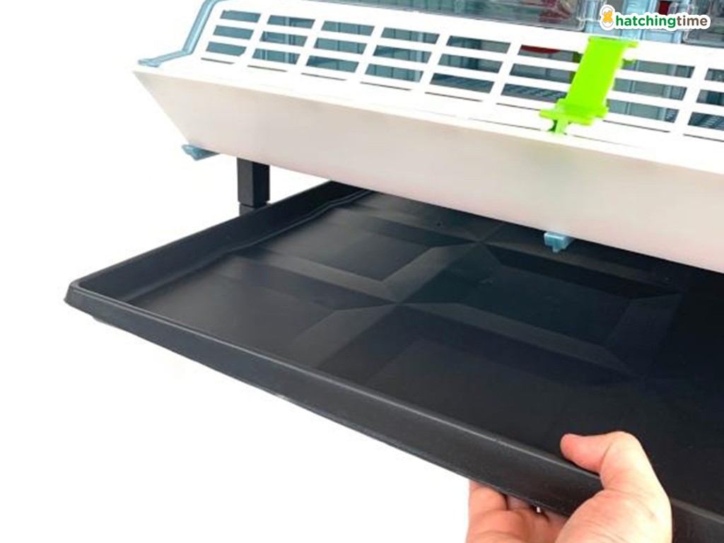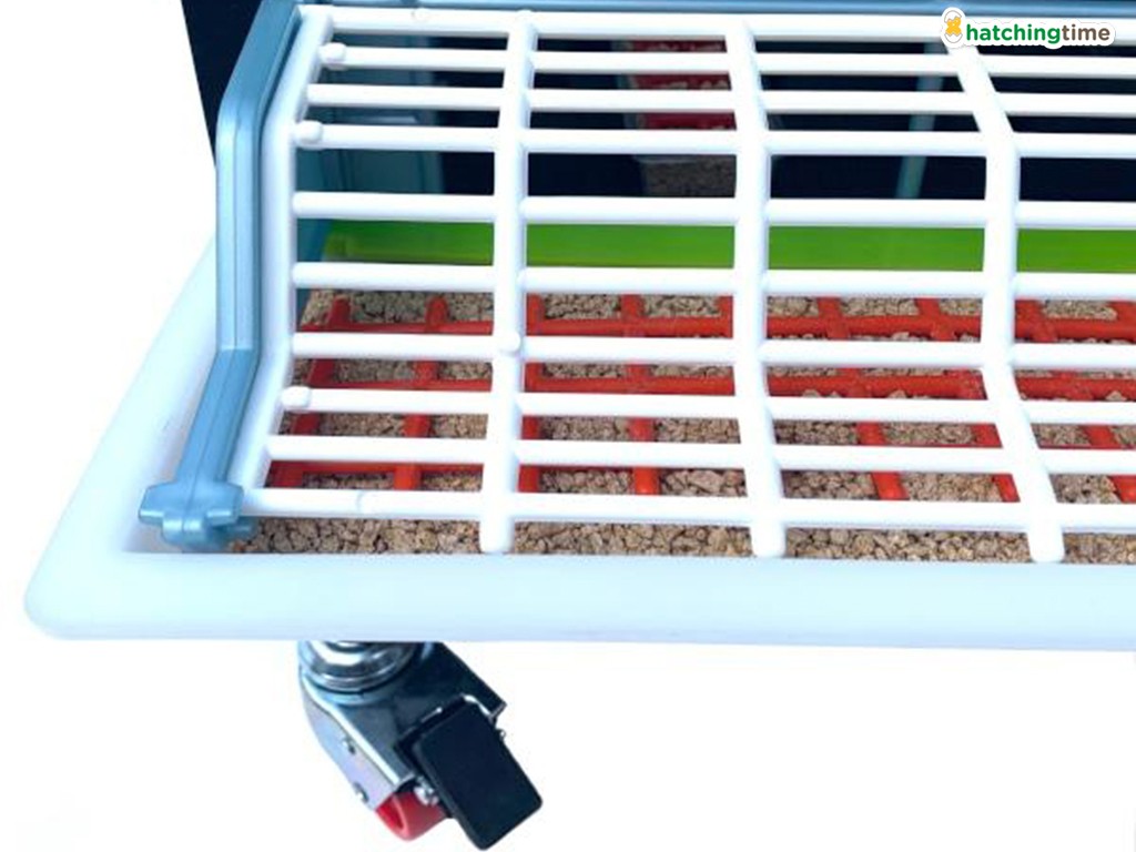 Az összecsukható , háromszintes tenyészház méretei kerekekkel, víztartállyal, fűtőegységekkel és etetőkkel együtt 104 x 60 x 132 cm.