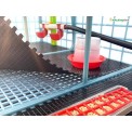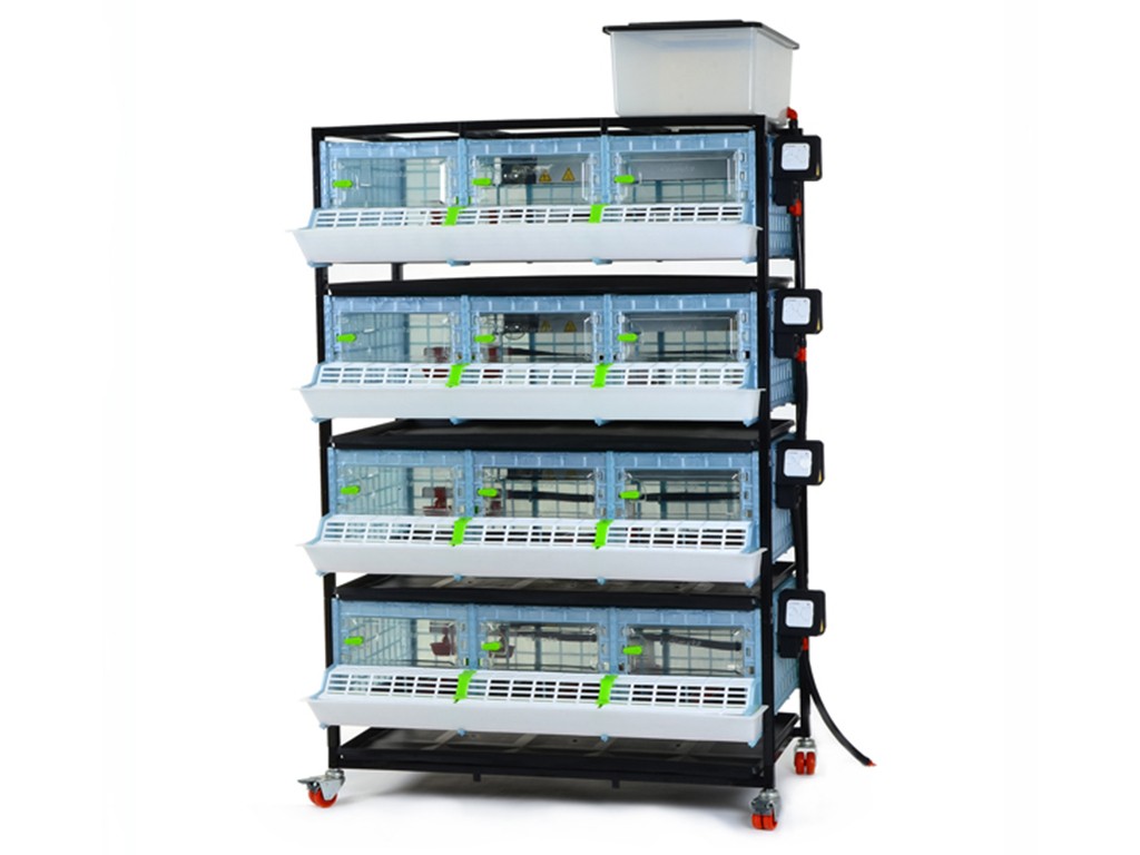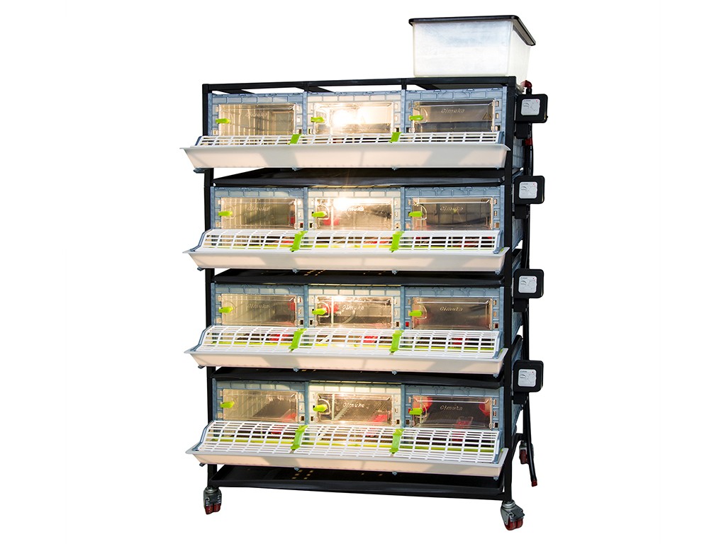 Baromfinevelő ól, 160-180 csirke tenyésztésére alkalmas, szabadalmaztatott Comfortplast technológiával , méretei 104 x 60 x 164 cm . Ez egy 4 szintes, 3 rekeszes ketrec , amelyek állítható termosztáttal és izzócsatlakozóval ellátott fűtőszalaggal , takarmánypazarlás megakadályozására ráccsal ellátott etetőkkel , 20 literes tartályból történő vízellátású itatókkal vannak felszerelve.
