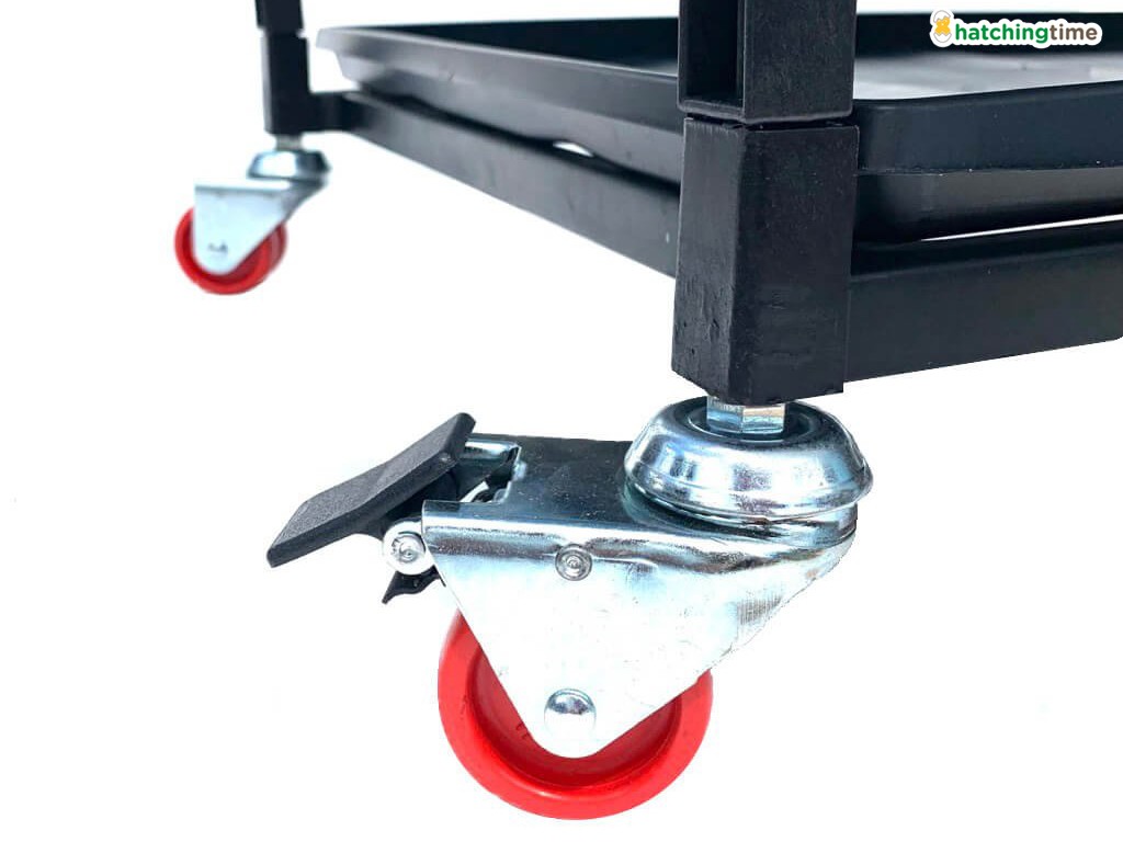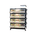 Az összeszerelt , négyszintes tenyészház méretei a kerekekkel, víztartállyal, fűtőegységekkel és etetőkkel együtt 104x60x164 cm .