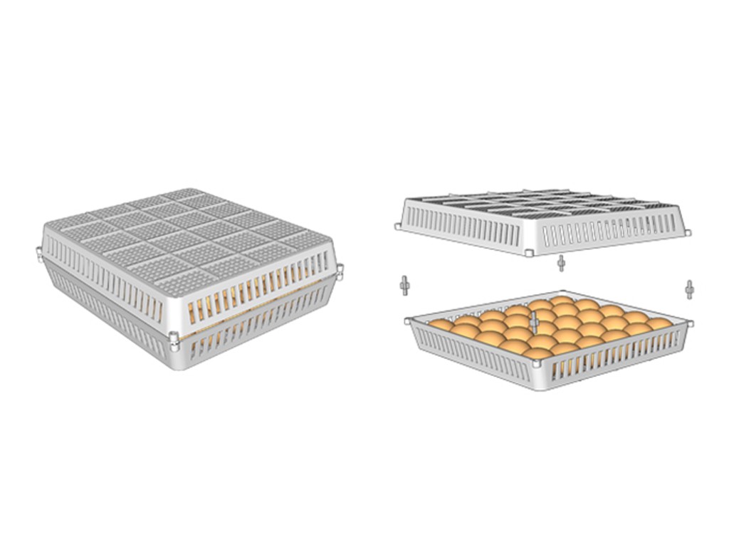 Tojások kikelés előtti elhelyezéséhez , CIMUKA CT sorozatú keltetőkhöz, 30 tyúktojás kapacitással , könnyű kezelés a kosár fedelén keresztül , magas légáramlás - lélegző konstrukció, mosható műanyagból készült .