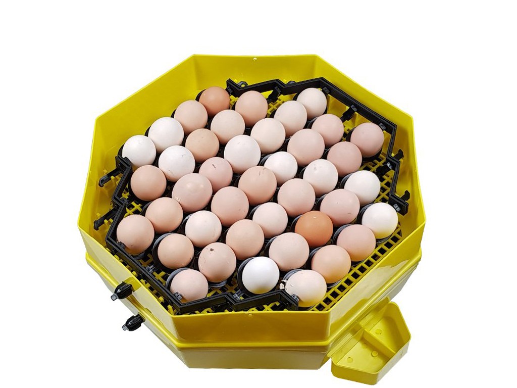 **Kapacitás forgórácsok nélkül: 120 csirke-, 240 fürj-, 60 liba-, 100 kacsa- vagy 140 fácántojás.**