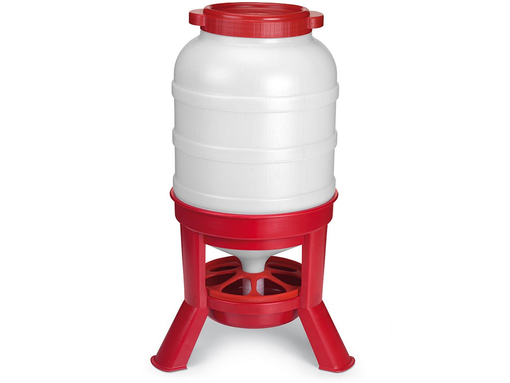 Etetőtállal, fedéllel és 40 literes tartállyal. Kapacitás akár 70 tyúk számára, etető méretei ØxM 510 X 780, lábmagasság 175 mm.