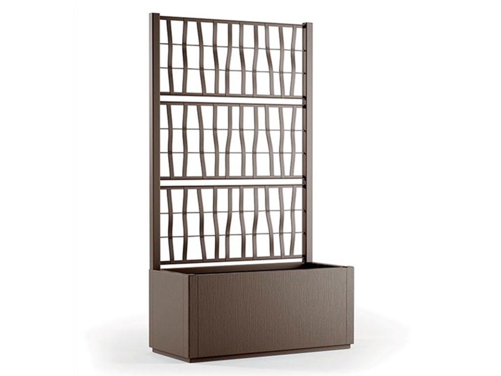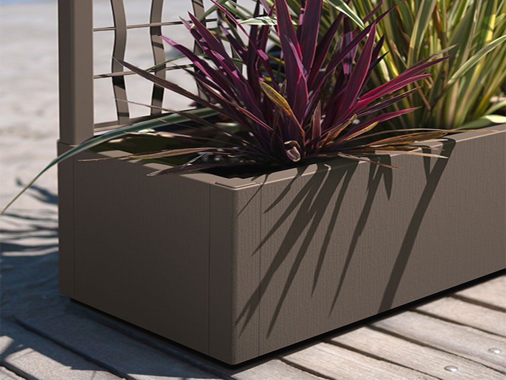 Doboz ráccsal, vízelvezető aljjal, kültéri használatra, polipropilénből készült, világosbarna színű, 80 literes űrtartalommal, méretek 80x36x142cm.