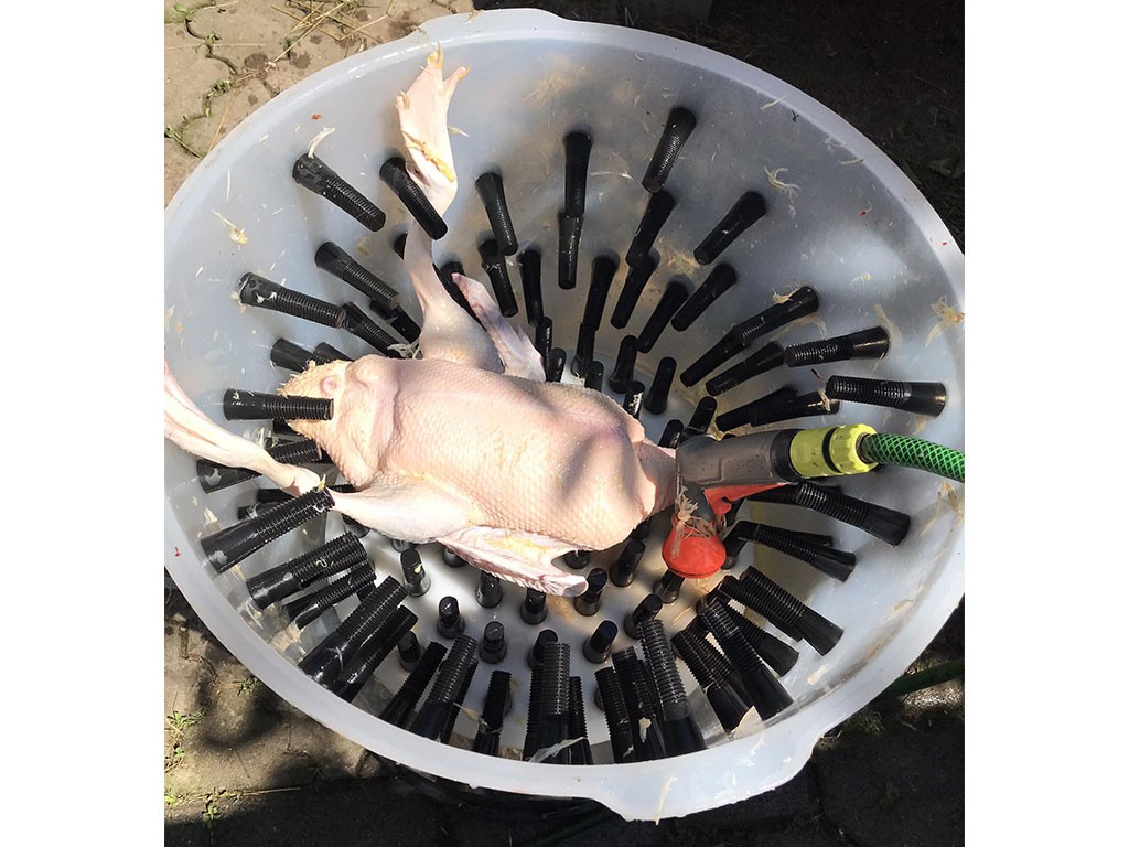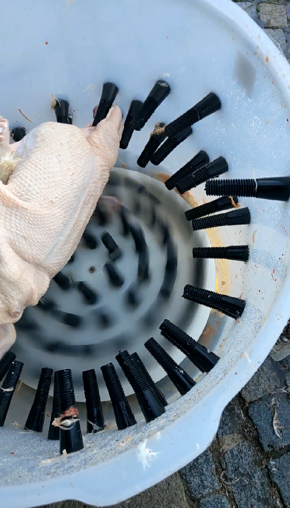 Kiváló minőségű baromfikoptató precíz kialakítással , amely a szárnytól a farokig szedi a tollakat a bőr károsítása nélkül . Ezt a kivételes teljesítményt a kopasztóujjak tökéletes elhelyezése biztosítja. Természetes gumiból készült kopasztóujjak . Sok éves tapasztalat alapján a leghatékonyabb helyeken vannak elosztva a forgótárcsán és a védődobon. A tépőujjak stratégiai elhelyezése nemcsak a toll sima eltávolítását biztosítja, hanem minimalizálja az energiafogyasztást is.