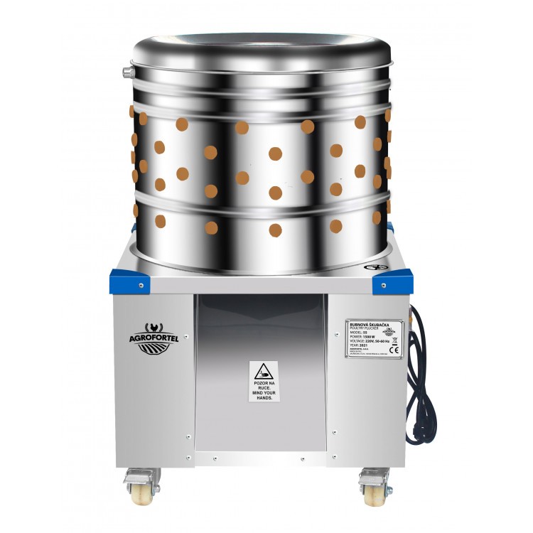 Bemutatjuk az AGROFORTEL BESTSELLER termékét , egy elektromos dobos kopasztót akár 18 kg-os baromfihoz - csirkékhez, kacsákhoz, libákhoz és kislibákhoz. Garantálja a baromfi professzionális és gondtalan kopasztását mind otthoni, mind mezőgazdasági környezetben. Az erős motornak, az öblítőrendszernek és a robusztus rozsdamentes acél konstrukciónak köszönhetően a kopasztás gyors, alapos és rendkívül higiénikus. Magát a kopasztást cserélhető gumi kopasztóujjak biztosítják egy 1500 W-os, 2 LE-s motorral együttműködve. Ez a kopasztó ideális segítőtárs, ha csirkéket, libákat, kacsákat és pulykákat kell kopasztania! Akár 18 kg baromfi tollait is képes leszedni mindössze 15 másodperc alatt - és mindezt anélkül, hogy a bőrt felszakítaná!