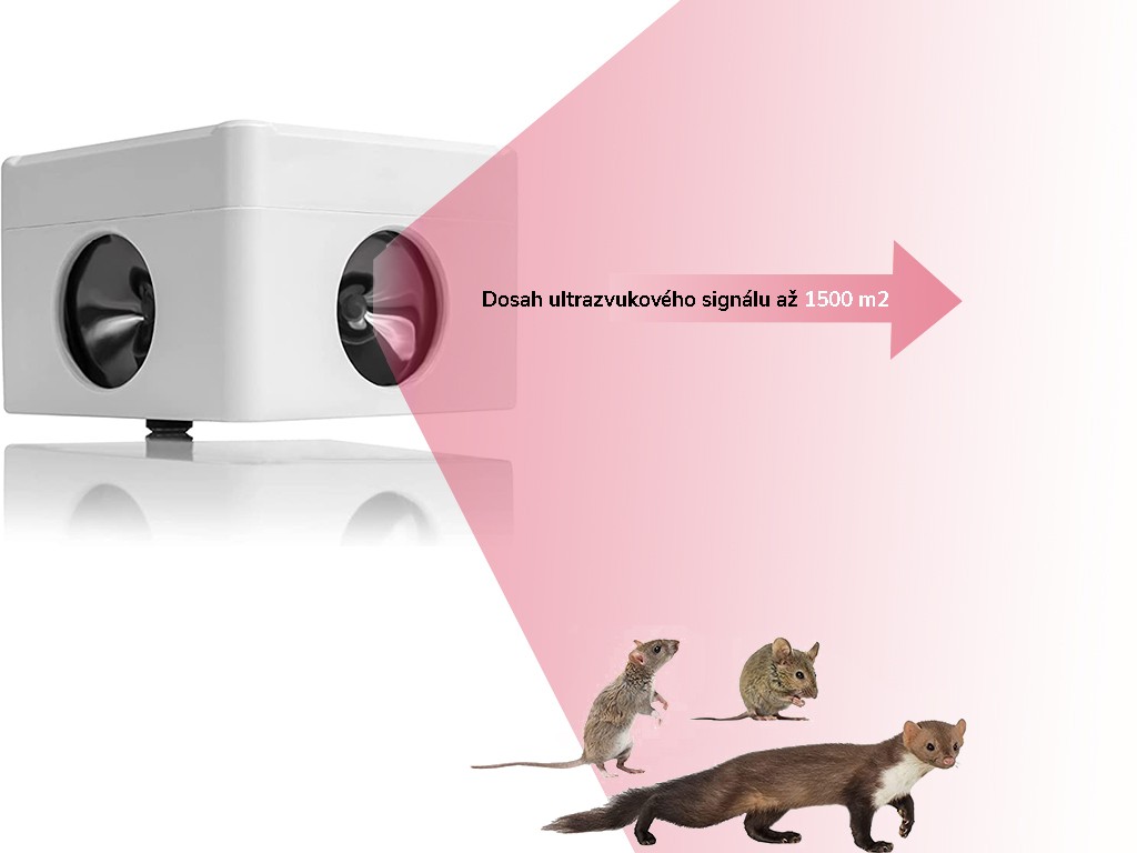 A készülék ultrahangos jeleket generál , amelyek kellemetlenek a nyestek és rágcsálók számára, és ennek következtében rövid időn belül elhagyják a védett területeket. A készülék változó frekvenciájú hangokat bocsát ki a teljesen hallhatatlantól a halktól a sipító hangig. Ez az automatikus frekvenciaváltás biztosítja, hogy a kártevő ne szokjon hozzá a hanghoz, és ne térjen vissza . Az ultrahangos jel nagyon jól visszaverődik a szilárd felületekről, így növelve a hatótávolságát. Ez a riasztó, amely három membrános hangszóróval van felszerelve, amelyek többszörösen erősebbek, mint a fém hangszórók, beltéren akár 1500 m2 , kültéren pedig akár 20 m hatótávolsággal rendelkezik 270°-os szögben.