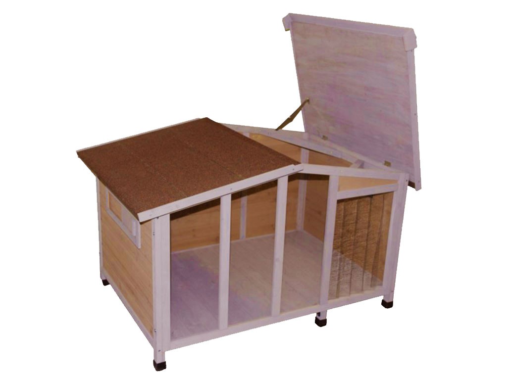 - A kennel tetejét bitumenes bevonat borítja, amely megakadályozza a kennelbe való beázást, és szárazon tartja a kutyát, biztonságosan elrejtve az eső elől. A tető mindkét szárnya lehajtható, hogy a kennelhez a lehető legkényelmesebben lehessen hozzáférni a tisztítás és karbantartás céljából.