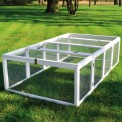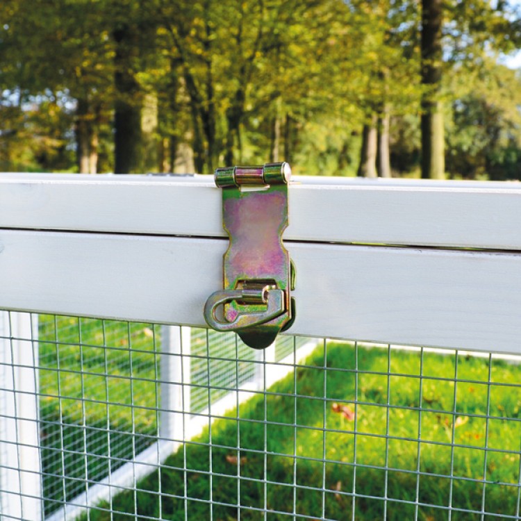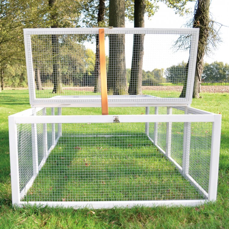 A fa kifutó stabil és kiváló minőségű. Két színben gyártjuk - vöröses faárnyalatban és fehérben . A színek környezetbarátak és teljesen ártalmatlanok az állatokra nézve. A drót hálószemmérete 1,2 x 1,2 cm , vastagsága 1,1 mm . Így optimális védelmet nyújt, így a nyula nem tud elszökni.