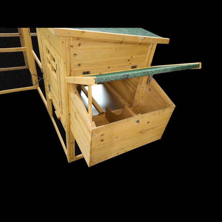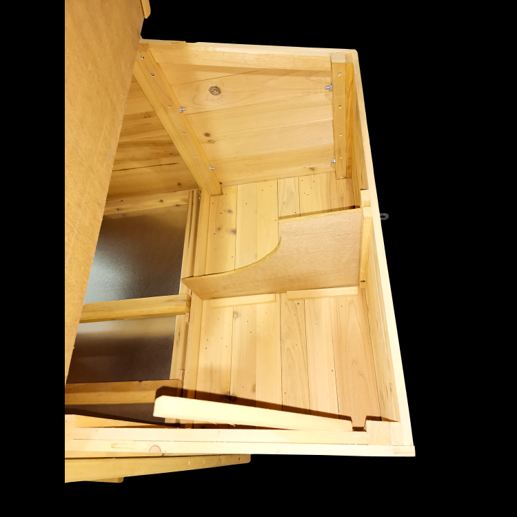 A tyúkól fiókkal van felszerelve, hogy az ürülék könnyen kiüríthető legyen.