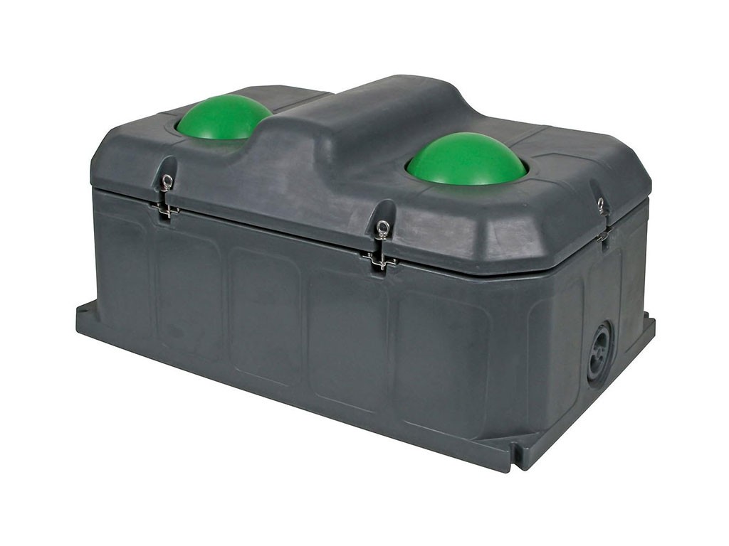 A golyós itató egy tartályból és egy fedélből áll, amelyek tartós műanyagból készültek és szigetelő PU habbal vannak kitöltve. Az itató tömörségének biztosítása érdekében a fedél és a tartály között dupla tömítőszalag, a fedél rögzítésére pedig 6 tömítő zárókapocs található.