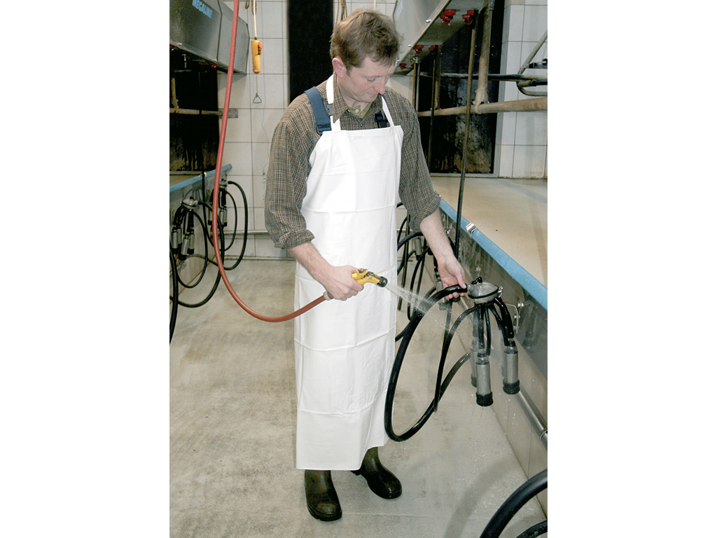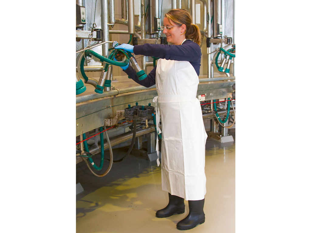 Fejéshez és mosáshoz való kötény, mezőgazdasági, háztartási és kerti munkákhoz is alkalmas, vízálló anyagból készült, nedvességgel és vízzel szemben, rendkívül ellenálló a szakadás és a repedés ellen , magas hőmérséklet-állóság -25°C és +70°C között, praktikus rögzítés a nyaknál állítható csattal, méretek 125x100 cm.
