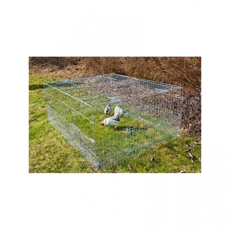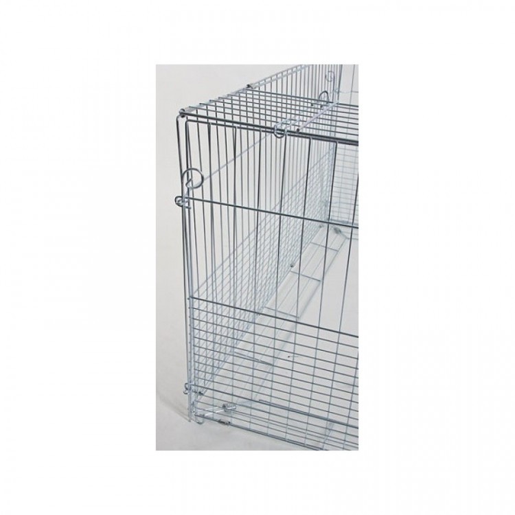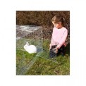 Horganyzott tartási terület nyulak , más rágcsálók és baromfi számára, amely különösen alkalmas fiókáiknak az alsó részben található sűrűbb rácsnak köszönhetően.
