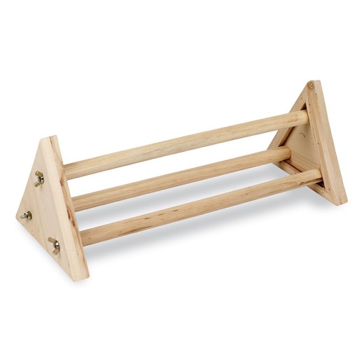 Fa ülőruda tyúkoknak és csirkéknek, 3 kerek ülőrúddal, szárnyas anyákkal rögzítve, méretei 43x15,7x15 cm.