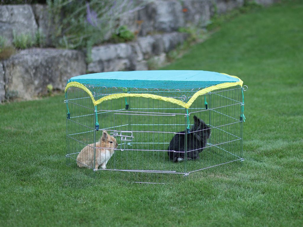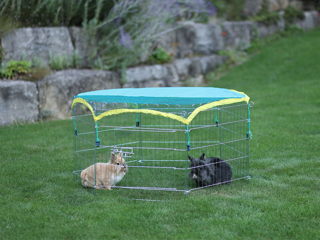 A ketreces kifutó tökéletes választás mindazok számára, akik nyulakat, tengerimalacokat vagy más rágcsálókat tartanak. Így kedvenceit a friss levegőn hagyhatja a fűben anélkül, hogy aggódnia kellene amiatt, hogy elszöknek. A kifutót pillanatok alatt összeszerelheti és szétszerelheti, ha szükséges. Ezt a mobil kifutót szükség szerint mozgathatja helyről helyre. A záródó ajtóval könnyen kinyithatja a kifutót. A kifutóhoz takarólapot és védőhálót rögzíthet, amelyek megvédik a nyulakat a közvetlen napfénytől és a ragadozóktól .