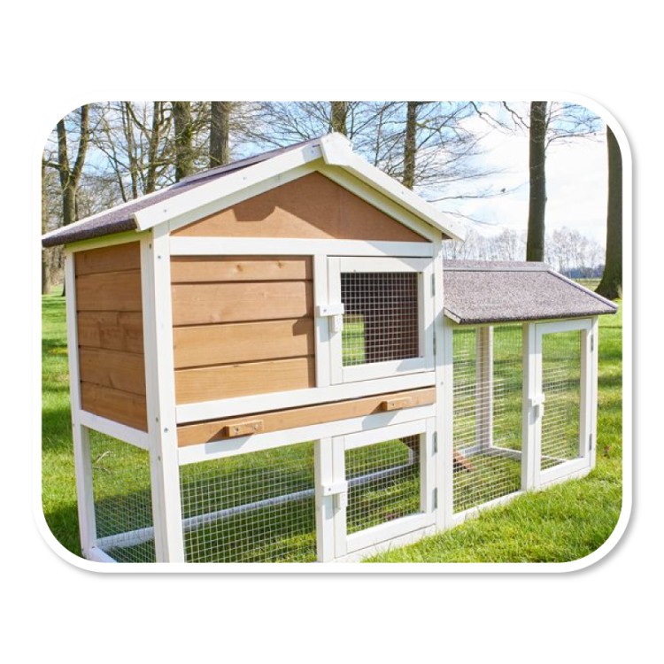 Nyúloknak , törpenyulaknak, tengerimalacoknak vagy más apró rágcsálóknak szánt faház , vagy akár egy tyúkól fészek nélkül - így szolgál majd a Hofstadt, egy 1460x500x860 mm- es lakóépület. Ez egy tökéletes nyúlketrec, amely kihúzható trágyatálcával van felszerelve a könnyű tisztítás érdekében. Három ajtó biztosítja a problémamentes hozzáférést a nyúlketrechez.