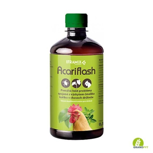 Az Acariflash egy hatékony, növényi kivonatokon alapuló folyékony kiegészítő takarmány, amely riasztja a dongókat és jelentősen korlátozza szaporodásukat . Biztonságos baromfi és ember számára, ideális e kellemetlen paraziták leküzdésére és hatékony megelőzésként.