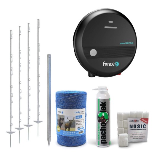 Speciális illat- és villanypásztor készlet mezőgazdasági növények, szőlőültetvények, gyümölcsösök és mezők dámszarvasok és vaddisznók elleni védelmére.