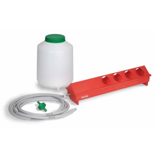 Itató csirkéknek és más baromfinak - 8 lyukú, szeleppel, 10 m 9 mm-es tömlővel, szűrővel és 8 literes víztartállyal.
