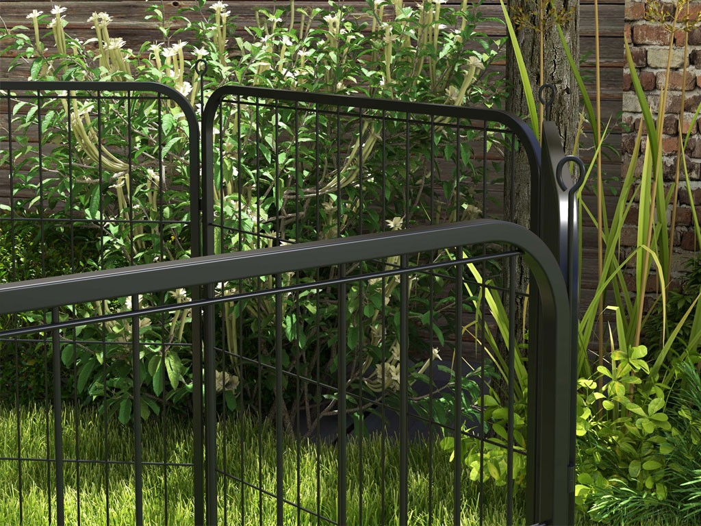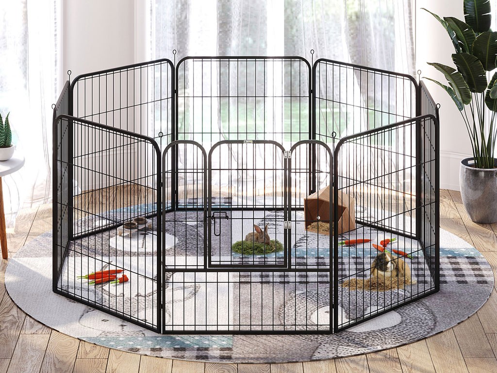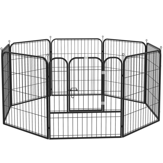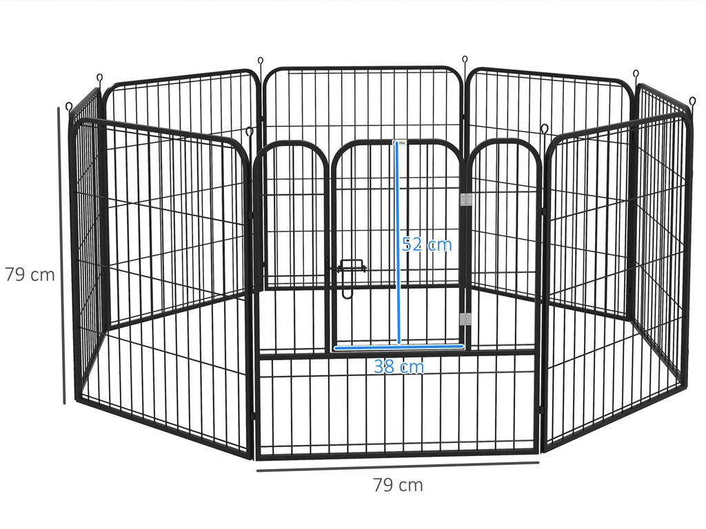 Játszóház kölyökkutyáknak és más állatoknak, beltéri és kültéri használatra, magasított, zárható ajtóval , stabil , robusztus szerkezettel, könnyen összeszerelhető és szétszerelhető, 8 db 79x79 cm-es rácsos panellel .