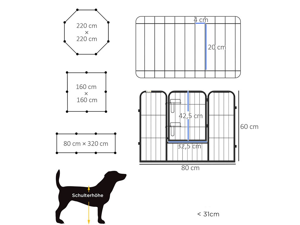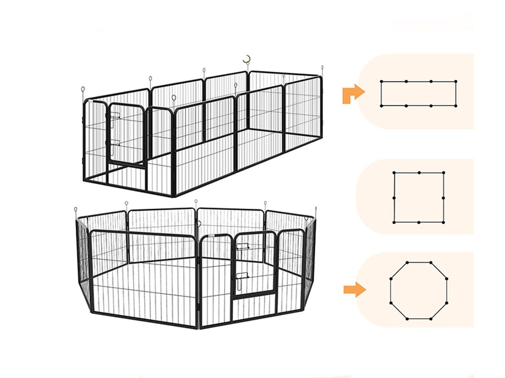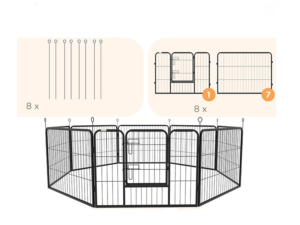 Játszóház kölyökkutyák és más állatok számára, stabil, tartós szerkezettel , zárható ajtóval, kültéri és beltéri használatra , 8 rácsos panellel, panelméretek 80 x 60 cm .
