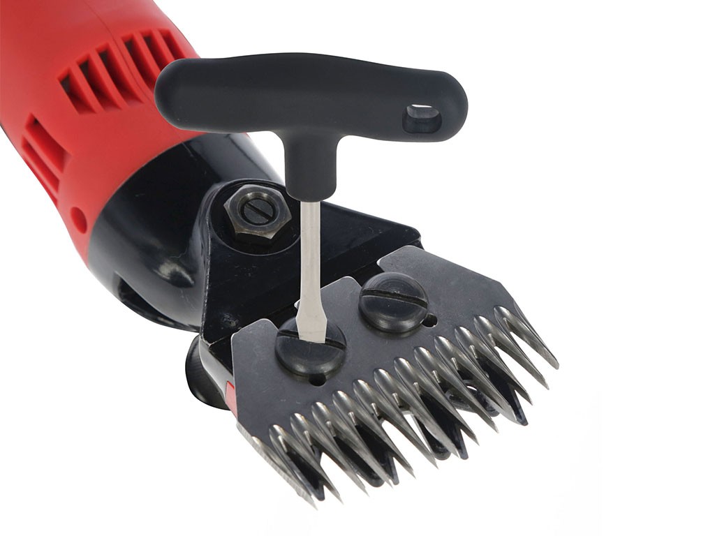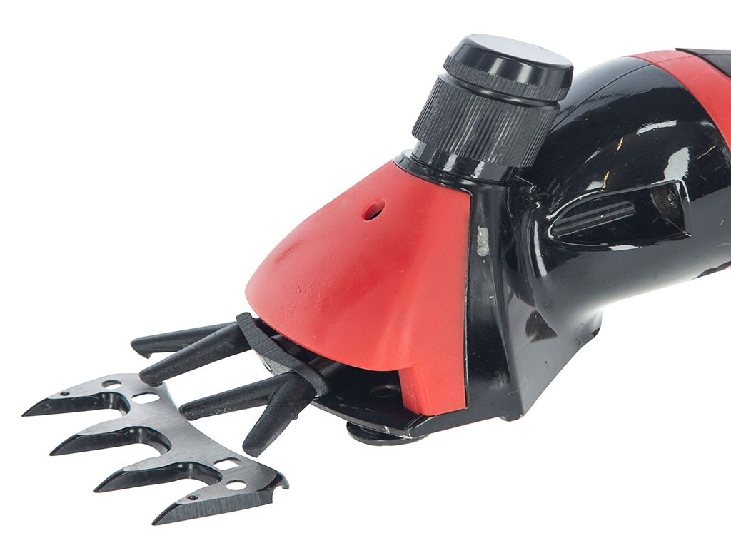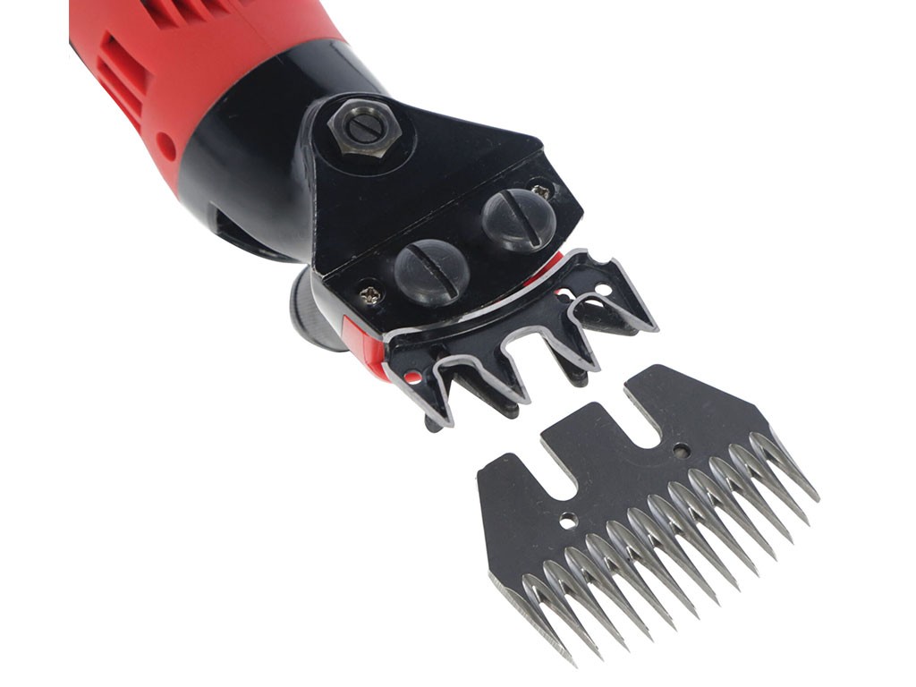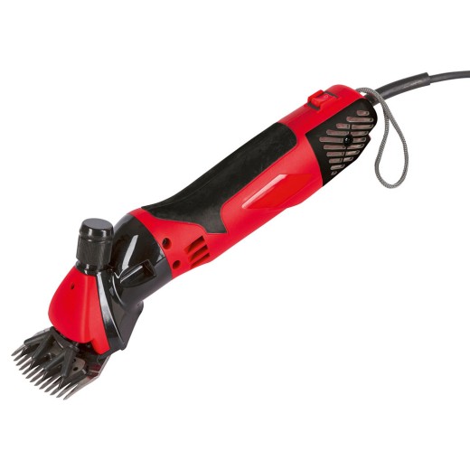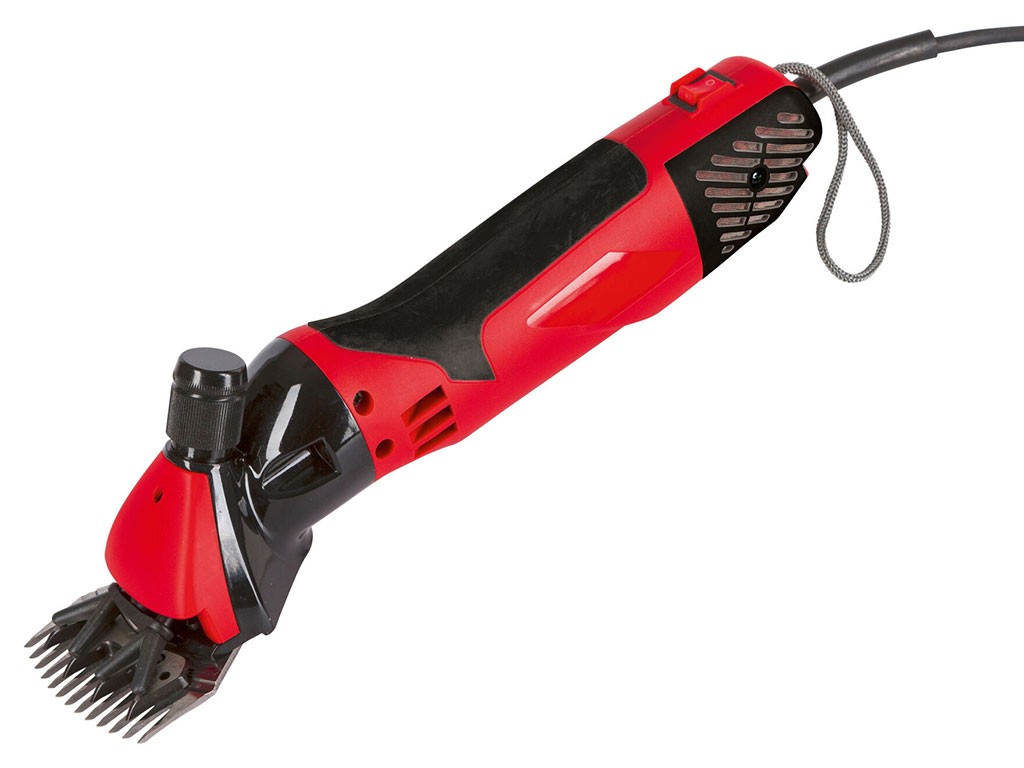 Professzionális juhnyíró gép , könnyű és könnyen kezelhető, 1 3/4 fogú pengék készlettel, magas és állítható vágási sebességgel , 2400 dupla löket/perc, nagyon erős 350 W-os motor, 6 sebességfokozat, 5,5 m hosszú tápkábel .