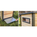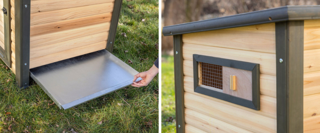 A kacsaól oldalán található praktikus , kihúzható horganyzott trágyatálca segítségével percek alatt kitisztítható a kacsaól. A kacsaólban a légáramlást egy tolóablak biztosítja.