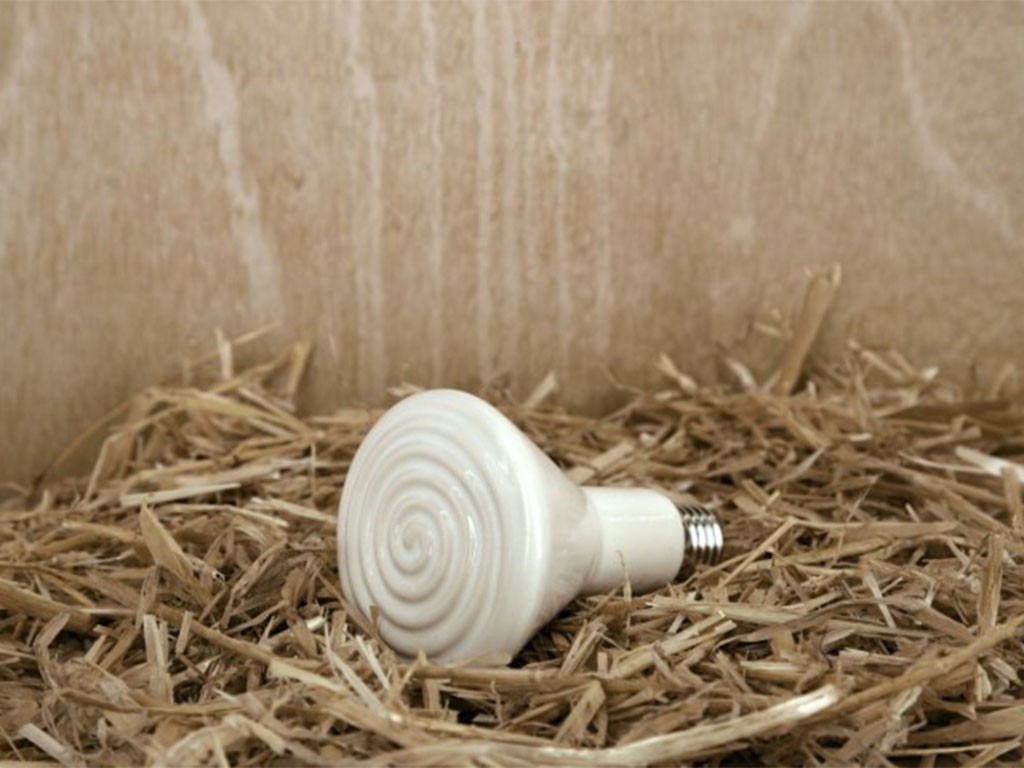 Kerámia felületű infravörös hőlámpa baromfiak, malacok és kölyökkutyák fűtésére, nem bocsát ki látható fényt, hősugárzást bocsát ki, teljesítmény 60 W , E27 menet.