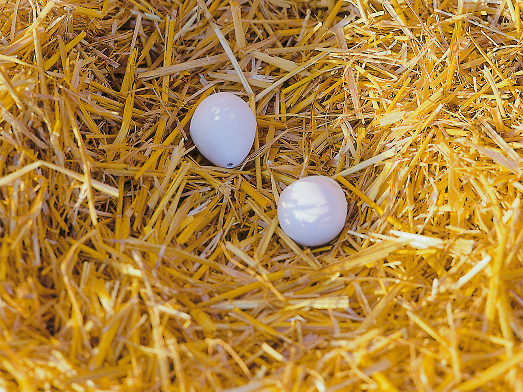 A kerámia tyúktalpat , egy valósághű tojáspótlót , a tojófészekbe helyezik, hogy ösztönözzék a tojótyúkokat a megfelelő helyre rakni, és segítsenek egy stabil fészek létrehozásában.