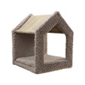 Falra szerelhető macskafa , hatrészes szett, falra szerelhető az egyéni térbeli lehetőségek szerint , hangulatos házikó, két lábtartó, teraszdeszka, rámpa és függőágy, teherbírás 10 kg .