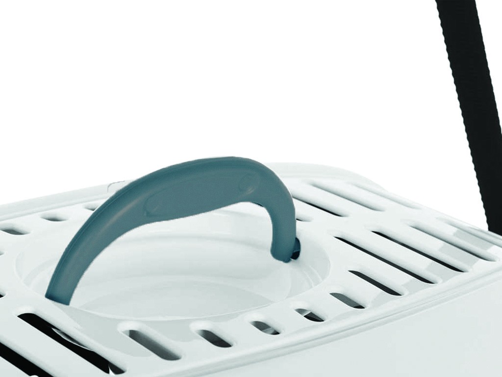 A könnyű hordozás érdekében a láda tetején praktikus fogantyú és vállpánt található. A fedélben és a láda oldalán található praktikus ablakok napellenzővel biztosítják a megfelelő légáramlást.