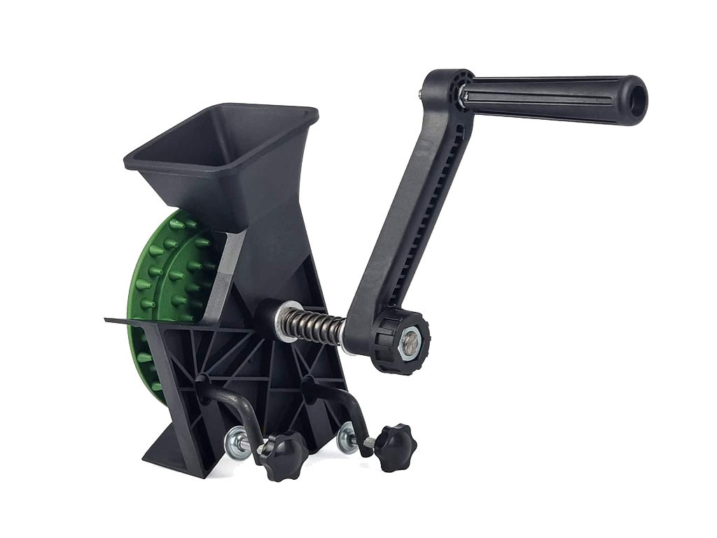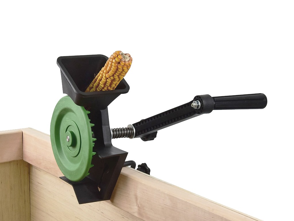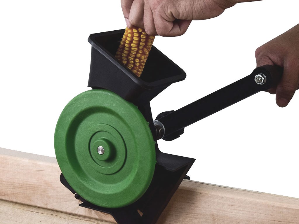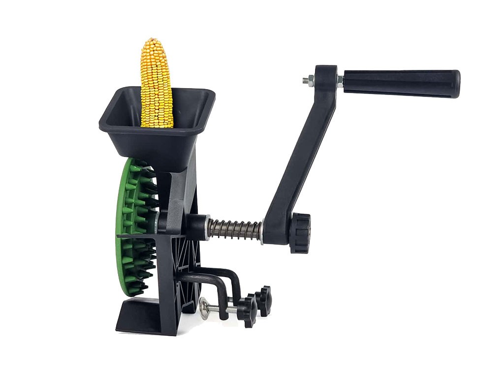 Kézi kukoricahámozó , cső méretéhez állítható , kézi tekerőkar fogantyúval, tartós tüskés tárcsa, szorítók a hámozó rögzítéséhez , anyaga: műanyag és acél.