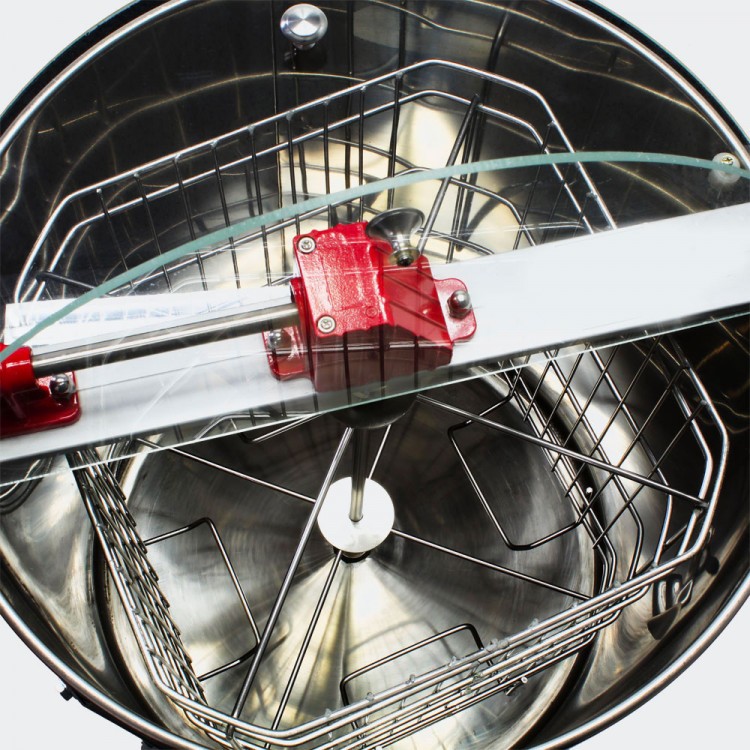 A készülék fedele átlátszó műanyagból készült, és 2 levehető résszel rendelkezik. A kinyerési folyamat bármikor ellenőrizhető. Természetesen a mézpergető minden része könnyen tisztítható.