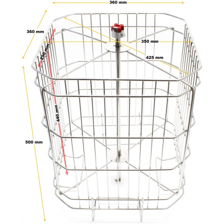 A forgó kosár 4 keret behelyezését teszi lehetővé. Nemcsak Zander méretű, hanem DIN szabványú keretek is behelyezhetők. Maximális keretméret: 440x250 mm.