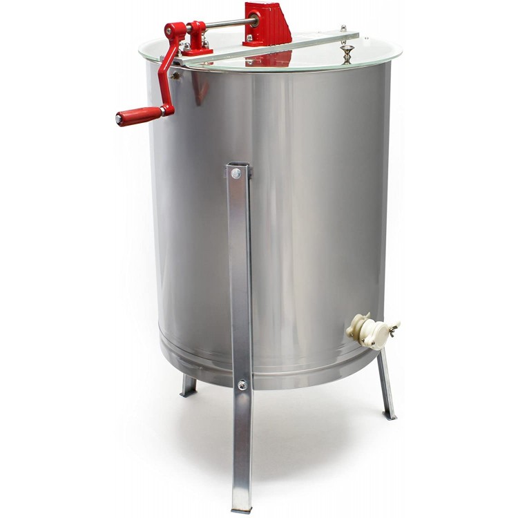 Ez a mézpergető masszív felépítésű és nagyon robusztus. 3 lábon áll. Minden alkatrész, amely érintkezésbe kerül a mézzel, rozsdamentes acélból készült és élelmiszeripari jóváhagyással rendelkezik.