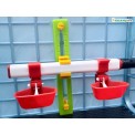 A csomag három hordozható etetőtálat tartalmaz a csibék életének első napjaira, a baromfiól pedig egy függesztett, nagy kapacitású etetővel is fel van szerelve, amely csibénként akár 2 napra elegendő takarmányt biztosít. Az etetők kiváló minőségű műanyagból készültek, ütésállóak és nagyon könnyen karbantarthatók . Ezenkívül az etetők speciális ráccsal vannak felszerelve, amely megakadályozza, hogy a csibék kiássák a takarmányt, így megakadályozza annak pazarlását . A rácsot úgy tervezték, hogy a takarmányfogyasztás során ésszerű mozgást biztosítson.