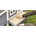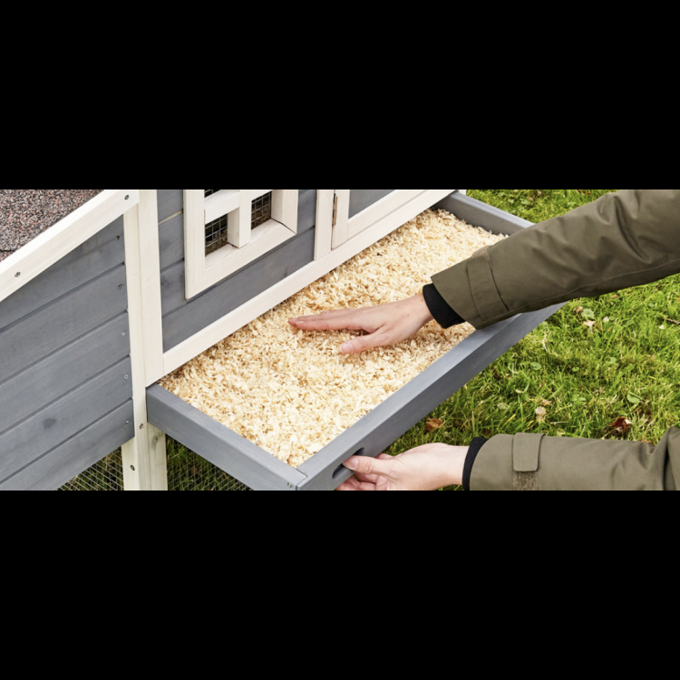 A tyúkól fiókkal van felszerelve, hogy az ürülék könnyen kiüríthető legyen.