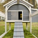 A tyúkól, amely akár 6 tyúk befogadására alkalmas (méretüktől függően), dupla fészekkel rendelkezik. A nappali a kifutóval van összekötve. A tartós tömörfa szerkezet nagy kényelmet garantál a tyúkok számára az ólban. Az ól nagyon tágas. A kifutót egy tolóajtó választja el a belső tértől . Az összeszerelés nagyon egyszerű az illusztrált utasítások alapján, és bárki meg tudja csinálni.