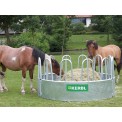 Kör alakú etetővályú, szarvasmarháknak és lovaknak, 3 részes, 12 etetőnyílással , hárompontos felfüggesztéssel, tűzihorganyzott , magasság 116 cm, belső átmérő 219 cm, külső átmérő 236 cm.