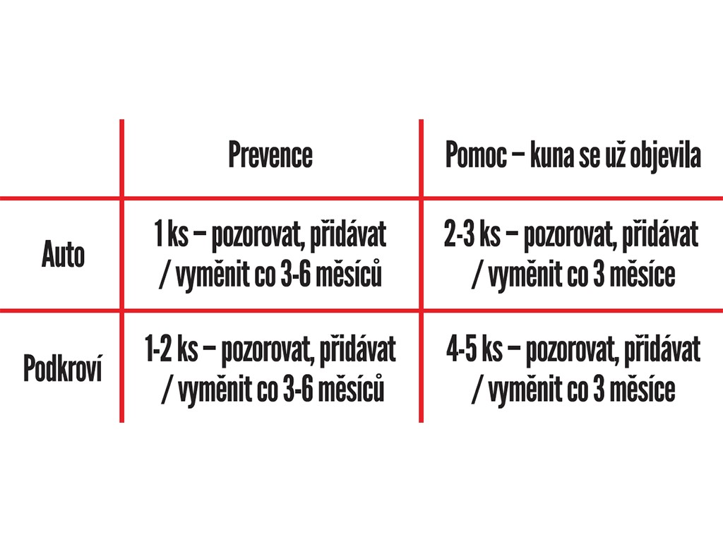 A riasztószer használható autóban, ha már észlelte a nyest jelenlétét (megharapott kábelek, szigetelés stb.), vagy a nyest autó motorházteteje alá jutásának megakadályozására . Használhatja a padláson, a pincében és a tyúkólban, vagy bárhol, ahol nyestnyomokat talált, vagy megelőző intézkedésként a nyest bejutása ellen .