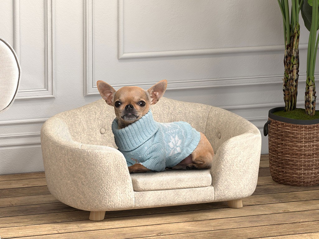 Kutya kanapé PAWHUT D04-196CW, krémfehér, 70x47x30 cm