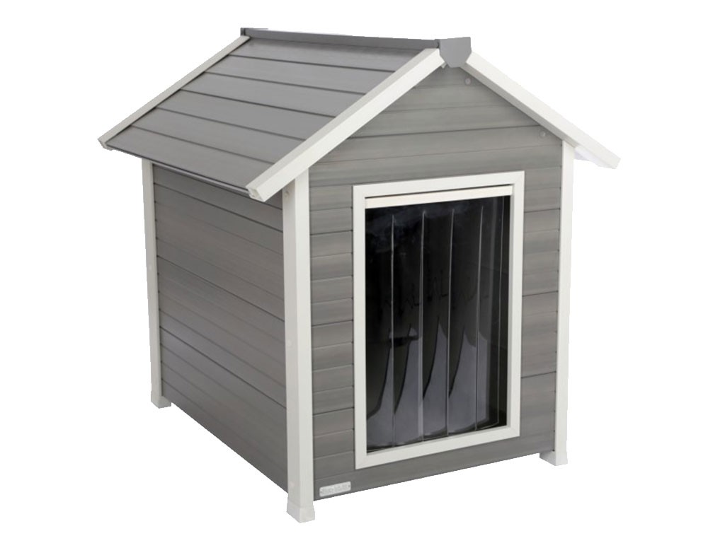 - A kutyaház bejáratát egy átlátszó léces ajtó védi , amely megvédi kedvencét a széltől és a hidegtől, és lehetővé teszi, hogy kutyája kényelmesen be- és kijárjon a házból. Ezenkívül az ajtó könnyen levehető.