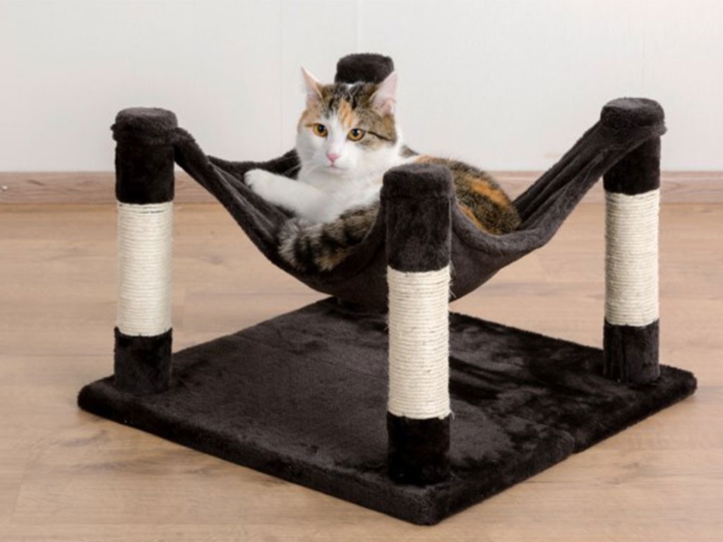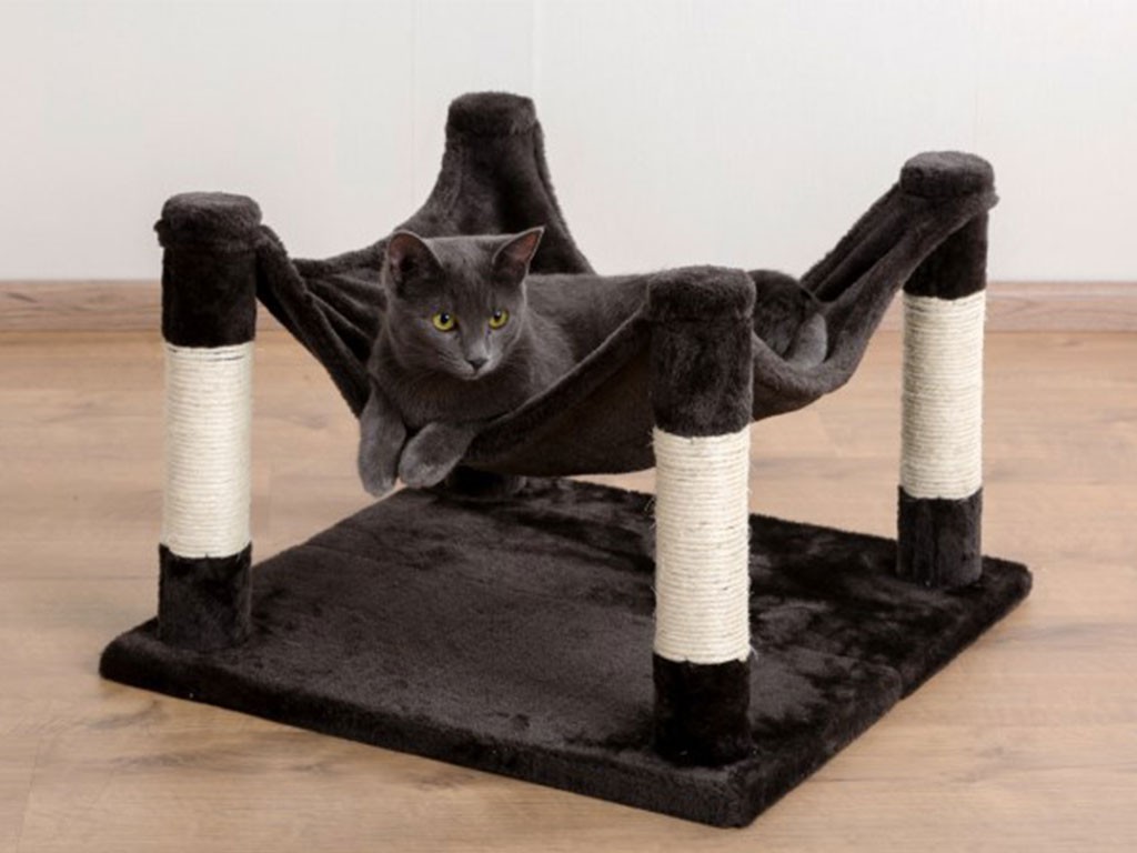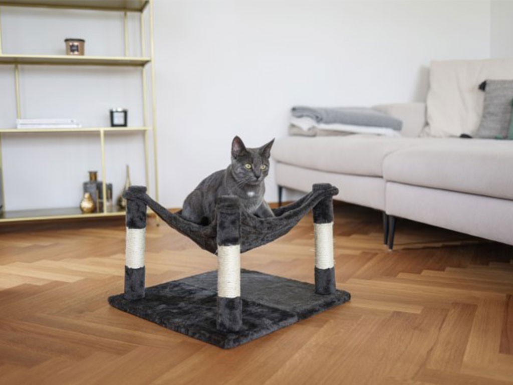Praktikus 2 az 1-ben kaparófa és pihenőhely a népszerű Samira sorozatból , 32x49x49 cm-es méretben, népszerű hintaággyal és kaparófákkal divatos , fényes antracit színben. A kisebb méretű kaparófa minimális helyet foglal el a lakásban, és macskájának szükséges menedéket biztosít mind a pihenéshez, mind a karmai élezéséhez.