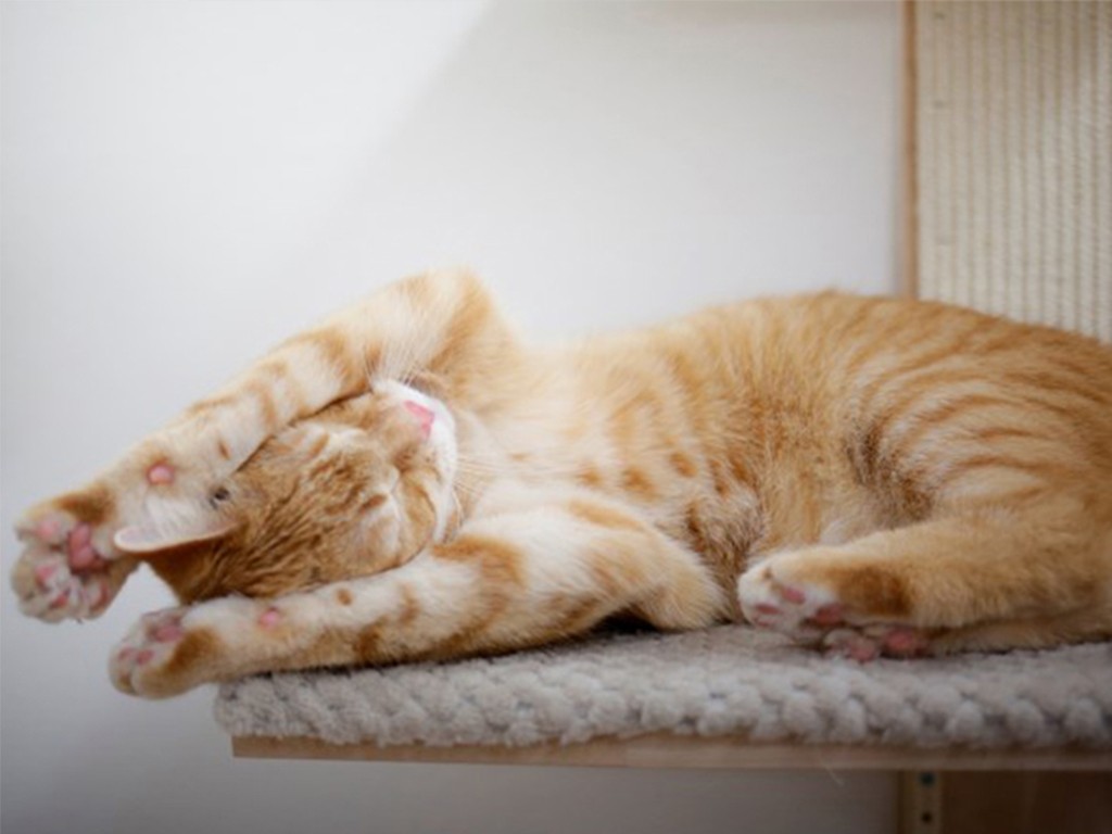 Macskakaparófa , fa, macskafák , falra szerelhető, két lábtartóval, három fekvőfelülettel és kivehető párnákkal , szizálrostlemezből , magasság 150 cm, teherbírás 4,5 kg .